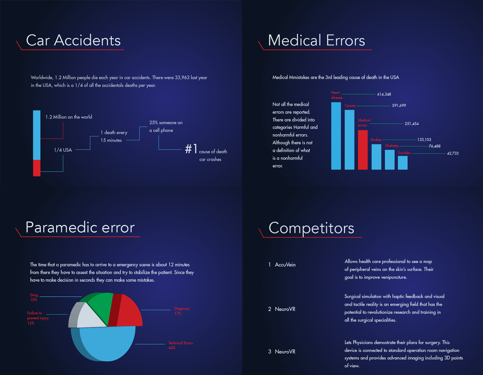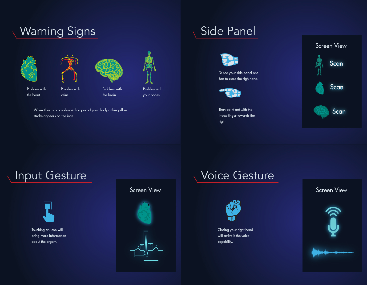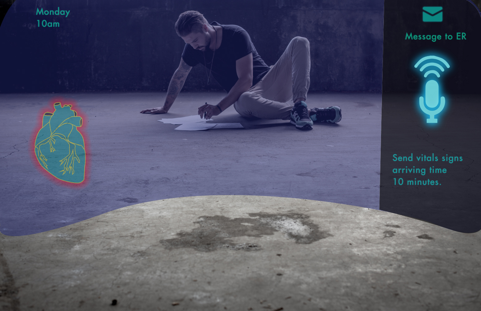 These glasses are designed to help paramedics when responding to emergent situations. The purpose of the glasses are to quickly scan the patient's body to reveal their health status and any underlying issues that cannot be seen with the naked eye. This helps paramedics make accurate and swift decisions regarding the treatment of the patient which increases survival rates. The glasses will also send live updates to local hospitals so they can be prepared and ready for when the patient arrives.